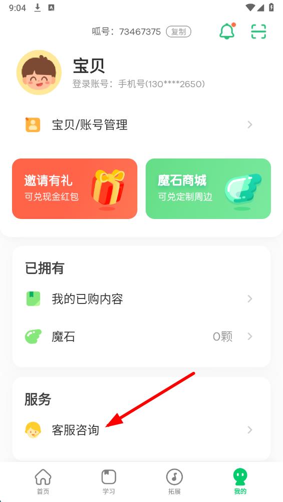 2、在我的頁面中,找到客服咨詢選項并點擊,進入客服咨詢相關(guān)界面。