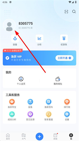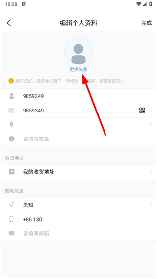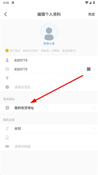 1、打開漁獲APP,在我的頁面點擊頭像進入編輯個人資料頁面。