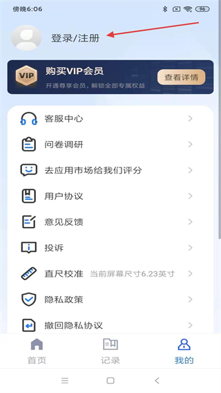 3、在我的頁(yè)面內(nèi),點(diǎn)擊登錄/注冊(cè)的區(qū)域。
