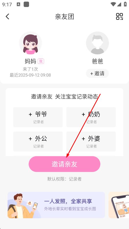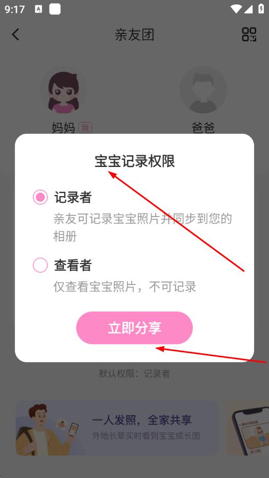 4、選擇親友的權(quán)限,點(diǎn)擊立即分享,通過分享鏈接等方式邀請親友加入。