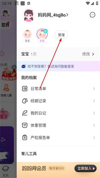 1、在媽媽網(wǎng)孕育App首頁點(diǎn)擊右上角的育兒頭像,進(jìn)入個人中心頁面。