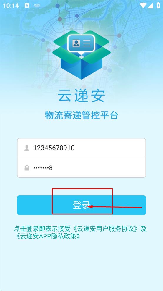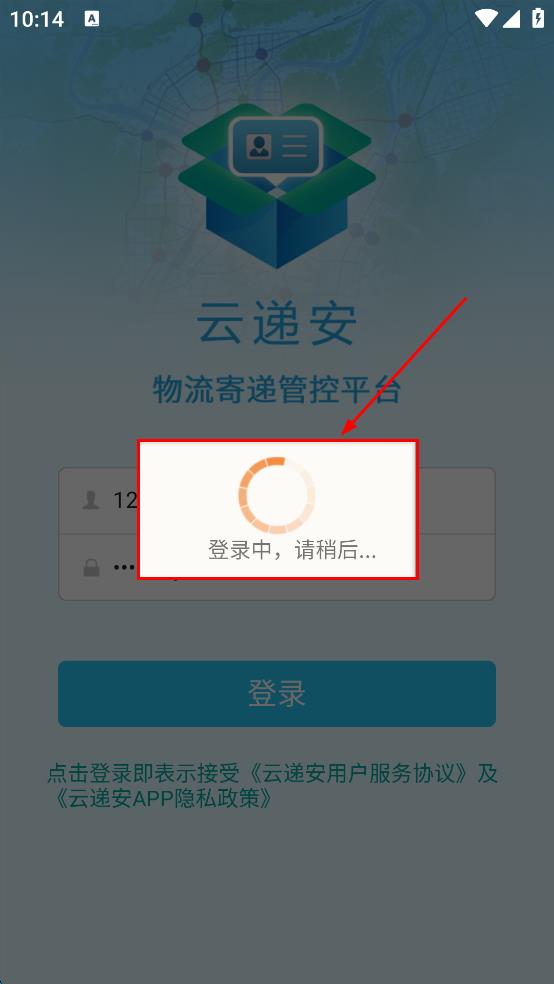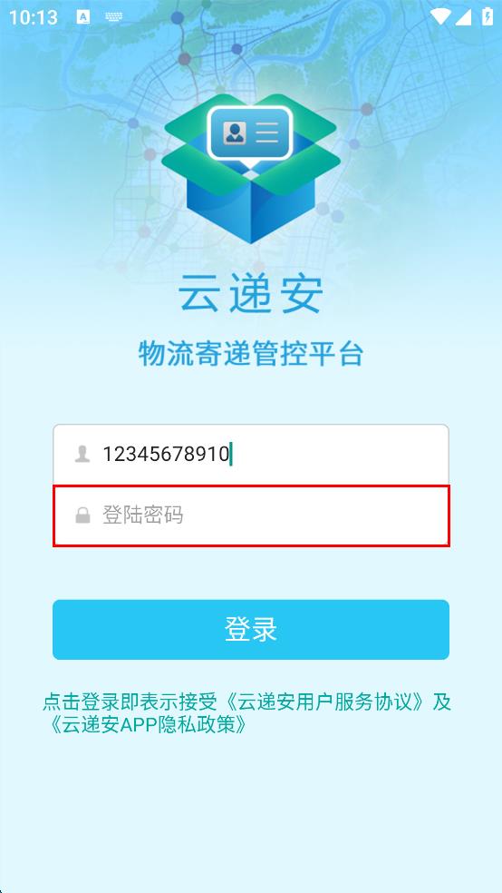 1、打開云遞安物流寄遞管控平臺,在登錄界面找到“您的賬號”輸入框,點擊并輸入賬號。