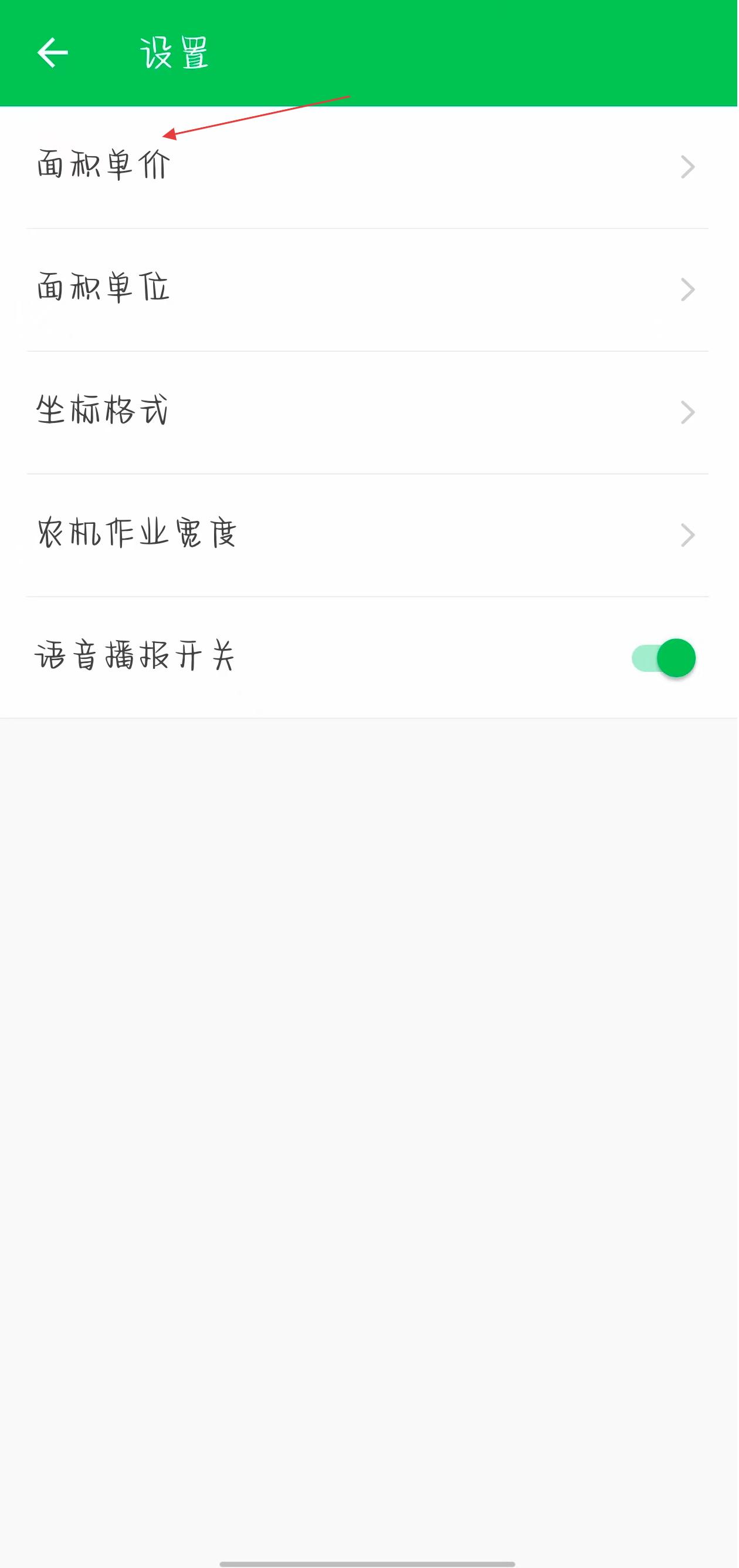 2、在設(shè)置頁面中,找到面積單價選項并點擊,進入面積單價設(shè)置界面。