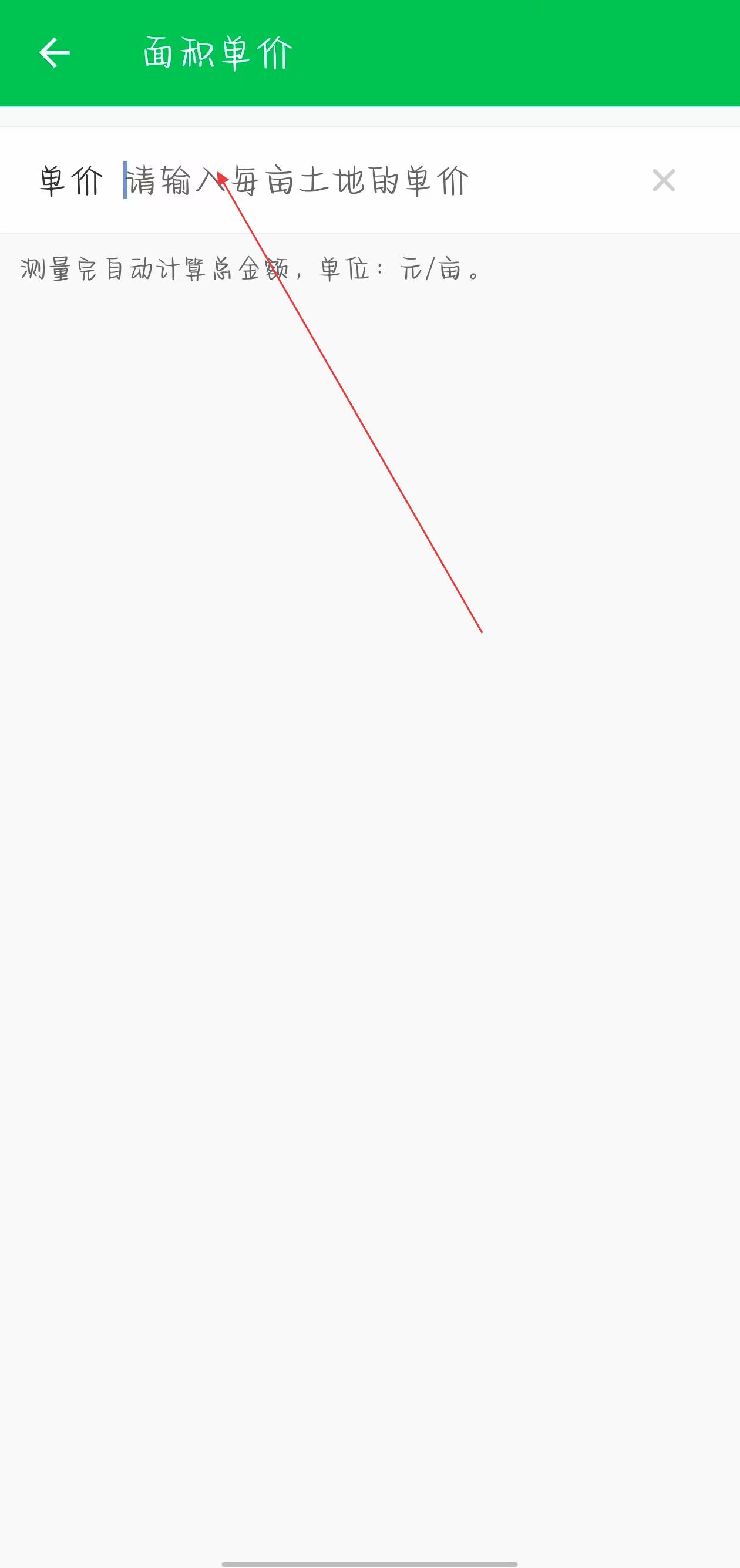 3、在面積單價設(shè)置界面的單價輸入框中,輸入每畝土地的單價,應(yīng)用會自動計算出總金額。