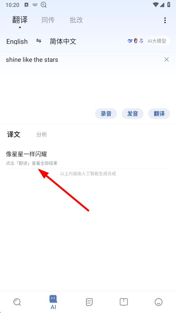 5、輸入完成后,即可在下方查看翻譯結(jié)果,若需完整結(jié)果,可點擊翻譯查看全部結(jié)果。