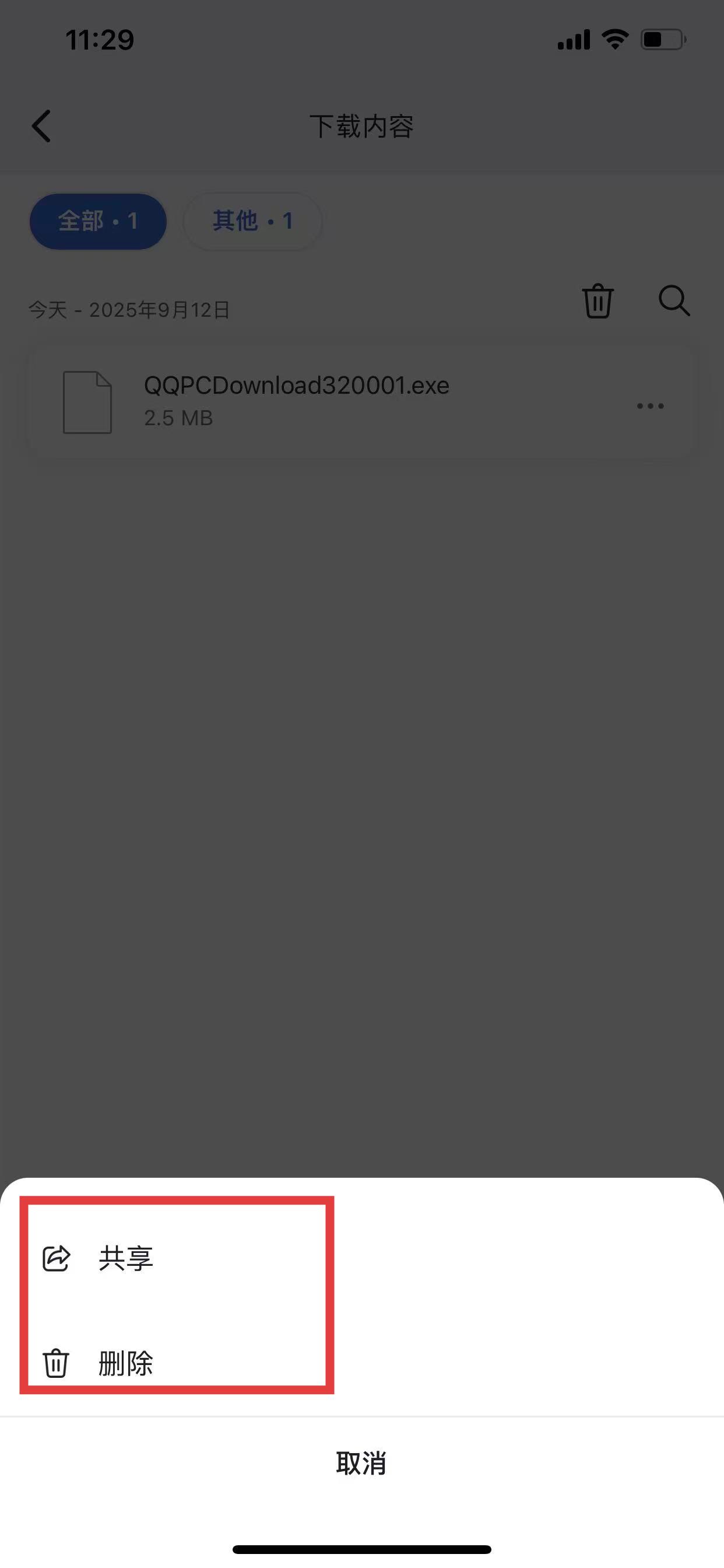 4、若需對下載內(nèi)容進行管理,可選擇共享或刪除等操作。