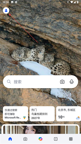 1、打開Bing應(yīng)用,點擊左上角的用戶圖標。