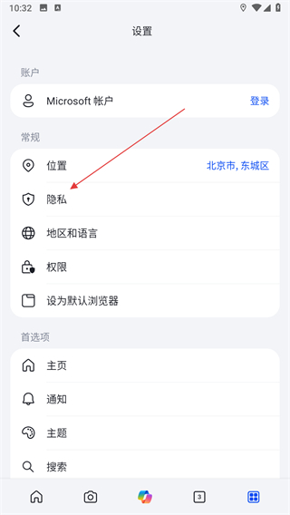 3、進入設(shè)置頁面后,點擊隱私選項。