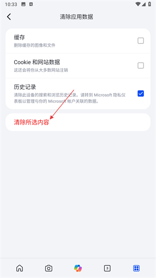 5、勾選歷史記錄選項,點擊清除所選內(nèi)容按鈕即可。