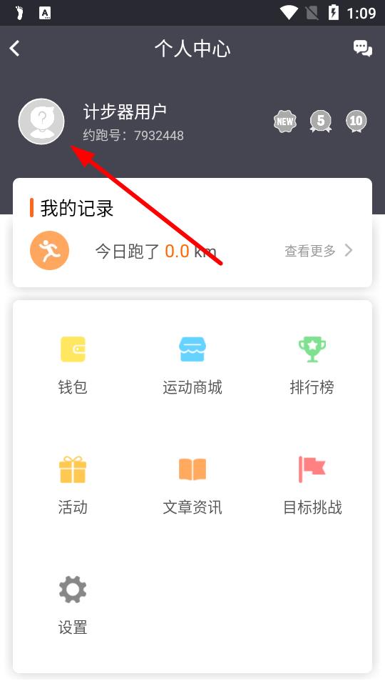 1、打開嘀嗒計步器app,點擊界面左上角的人像圖標,進入個人中心頁面。