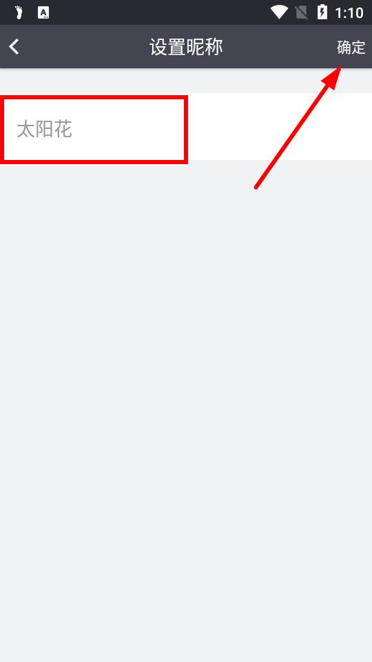 4、在設(shè)置昵稱頁面的輸入框中,輸入想要修改的名字,輸入完成后點擊右上角的確定,即可成功修改名字。