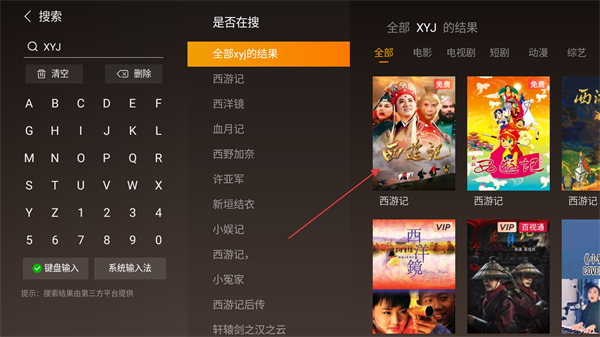 3、輸入后,在搜索結(jié)果中找到并點(diǎn)擊目標(biāo)影視即可。