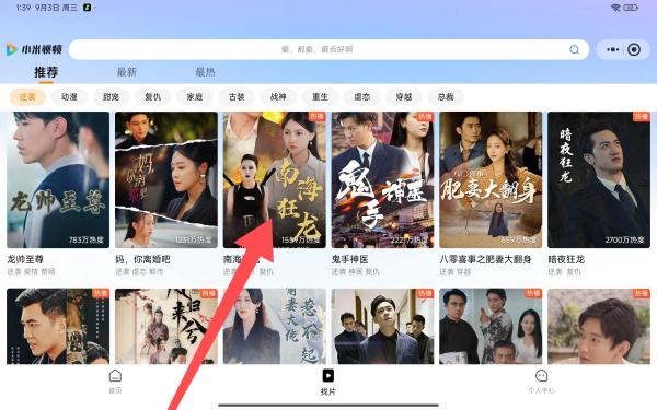 2、進(jìn)入短劇界面后,瀏覽各類(lèi)短劇封面,比如南海狂龍,選擇自己感興趣的短劇。