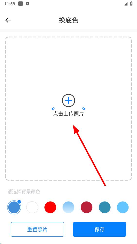 2、在換底色頁面,點(diǎn)擊上傳照片區(qū)域,從相冊(cè)中選取需要更換底色的照片。