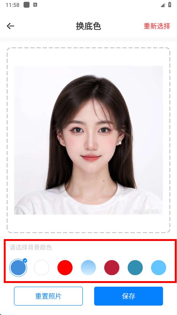 3、照片上傳成功后,在頁面下方的背景顏色選擇區(qū)域,點(diǎn)擊想要更換的底色。