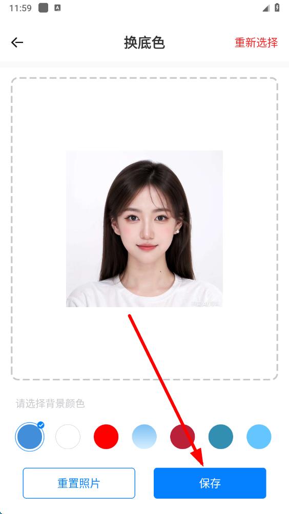4、選好底色后,點(diǎn)擊頁面右下方的保存按鈕,完成證件照底色更換。