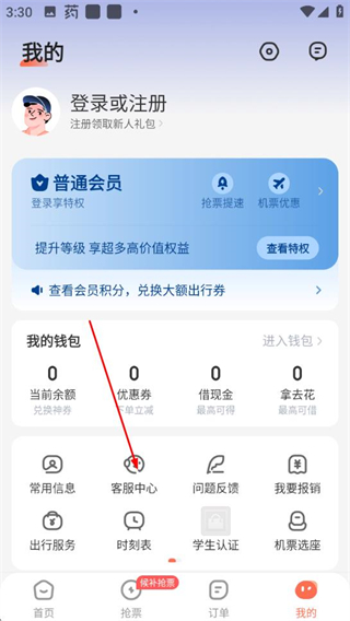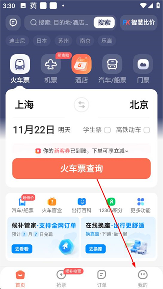 1、打開鐵友火車票APP,點擊底部我的選項,進入個人中心頁面。