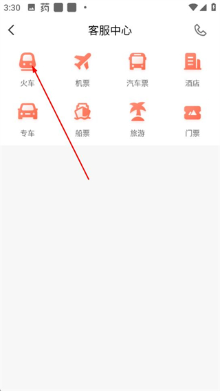 3、在客服中心界面點擊火車分類,即可進入火車票相關的客服咨詢頁面。