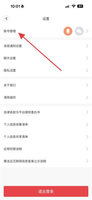 3、在設(shè)置界面里,點(diǎn)擊賬號(hào)管理選項(xiàng),進(jìn)入賬號(hào)管理頁(yè)面。