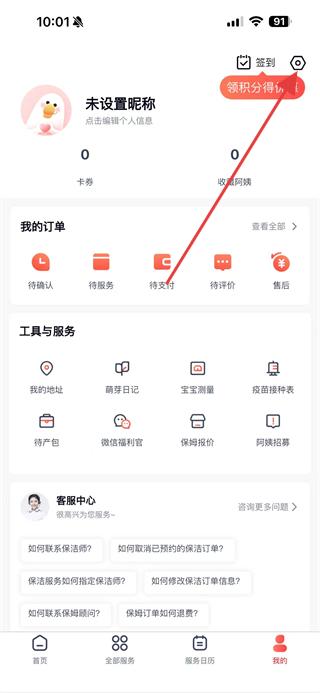 1、打開(kāi)天鵝到家APP,點(diǎn)擊底部導(dǎo)航欄的我的選項(xiàng),進(jìn)入個(gè)人頁(yè)面。