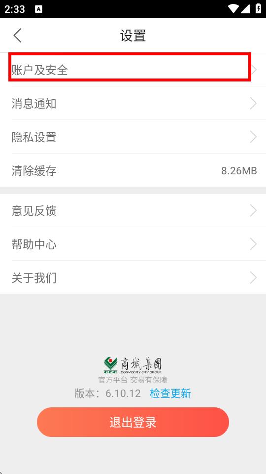 2、在設(shè)置界面里,找到并點(diǎn)擊賬戶及安全選項(xiàng)。