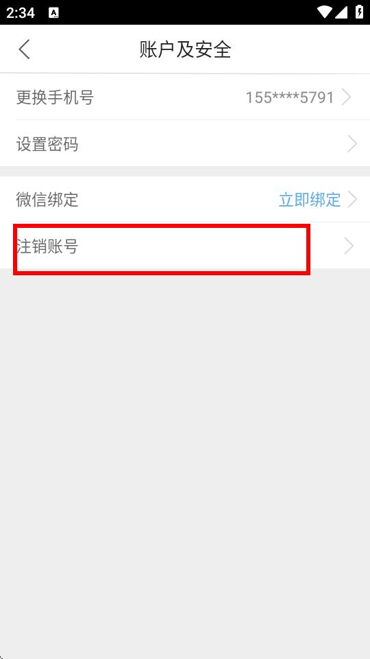 3、進(jìn)入賬戶及安全頁(yè)面后,點(diǎn)擊注銷(xiāo)賬號(hào)選項(xiàng)。