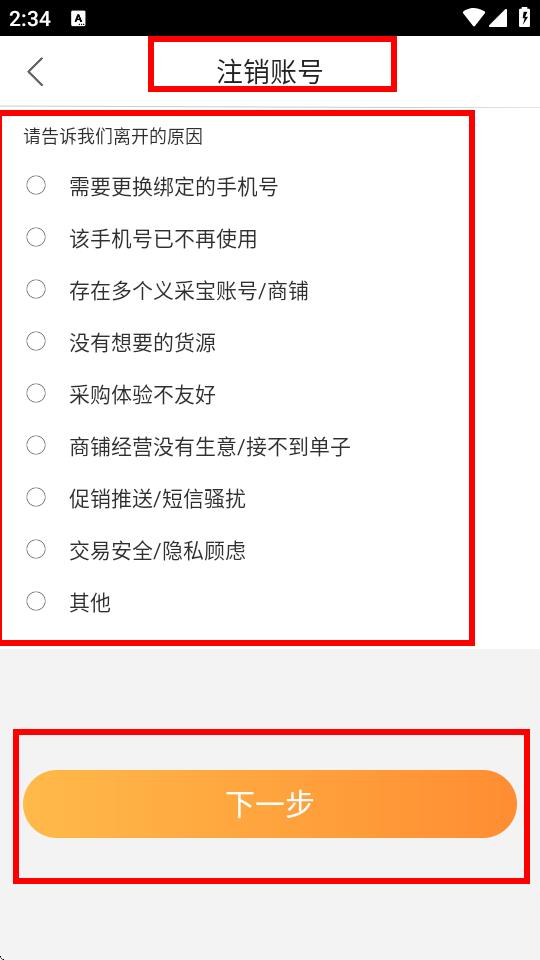 4、在注銷(xiāo)賬號(hào)頁(yè)面中,選擇注銷(xiāo)原因,然后點(diǎn)擊下一步,按照后續(xù)提示操作完成賬號(hào)注銷(xiāo)。