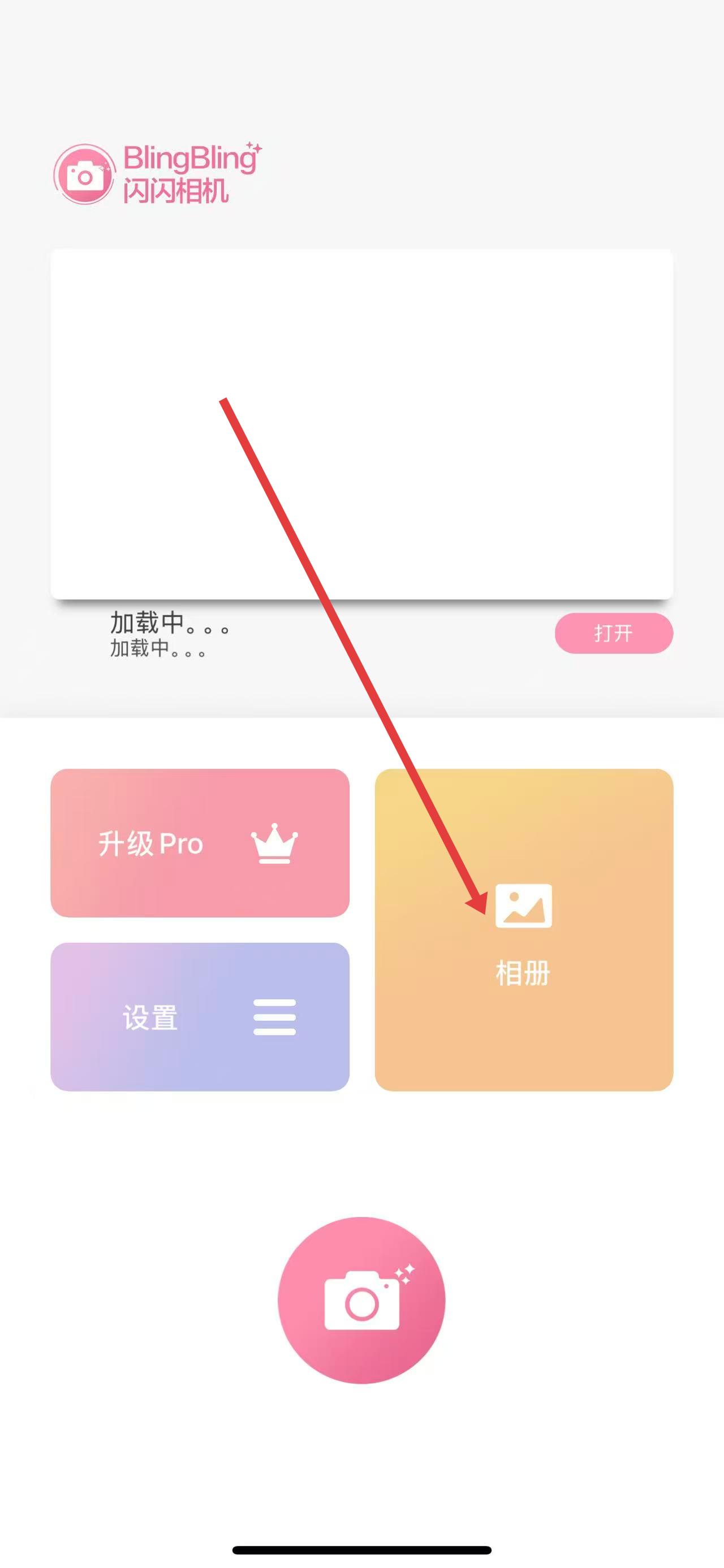1、打開閃閃相機應(yīng)用,在主界面點擊相冊按鈕,選擇需要修圖的照片。