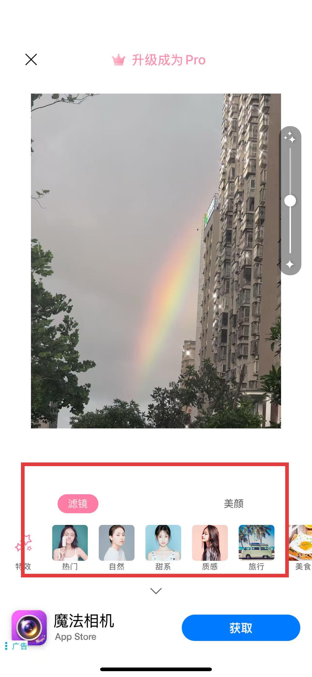 3、在編輯界面下方,找到濾鏡和美顏等選項,點擊選擇合適的濾鏡風(fēng)格或者調(diào)整美顏參數(shù),完成對照片的修圖操作。