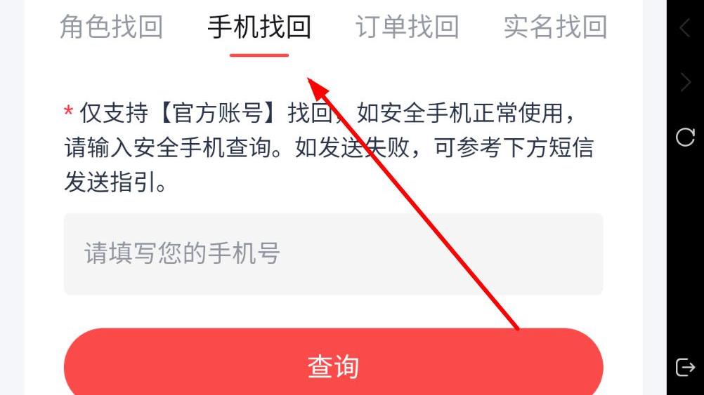 3、若角色找回?zé)o法滿足需求,還可試試手機(jī)找回或?qū)嵜一兀謾C(jī)找回輸入手機(jī)號進(jìn)行查詢,實(shí)名找回輸入本人實(shí)名,按提示操作完成賬號找回。