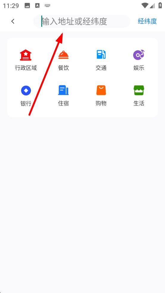 2、在搜索界面中,找到輸入地址或經(jīng)緯度的輸入框,準(zhǔn)備進(jìn)行坐標(biāo)相關(guān)操作。