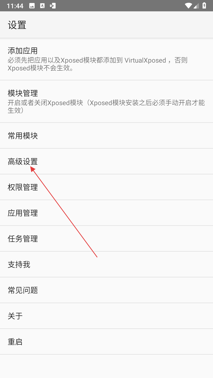 1、打開VirtualXposed應(yīng)用,通過點擊底部抽屜按鈕,進(jìn)入設(shè)置界面。