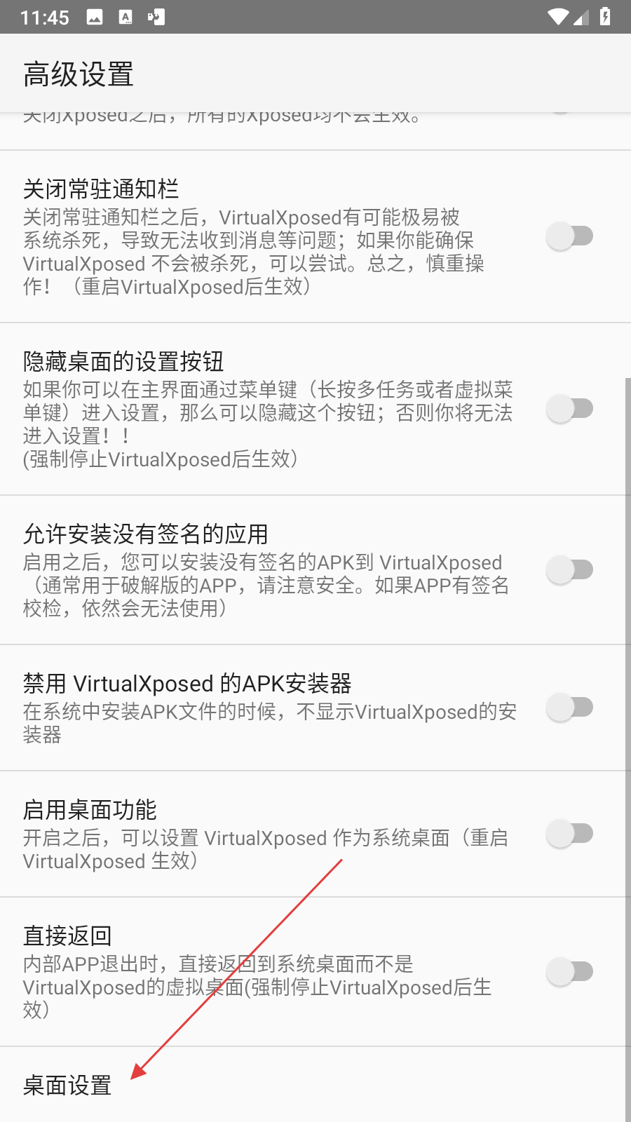3、在高級設(shè)置頁面中,找到并點擊桌面設(shè)置選項,進(jìn)入桌面設(shè)置界面。