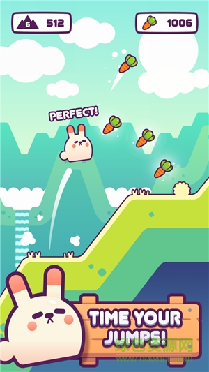 該游戲非??简炌婕业臅r間把控能力,通過按住屏幕的時間長短來決定小胖兔的跳躍距離,控制一只可愛的小胖兔在一個沒有盡頭的小山坡群中跳躍前行,看似簡單但是非??简炌婕业募记桑徊恍⌒奶搅似俨贾谢蛘咝逼律隙紩е滦∨滞锰魬?zhàn)失敗哦。不過不要擔心,前進的路上危險重重但是卻充滿驚喜,沿路都是小胖兔最喜歡的蘿卜,而且玩家會在這段旅途中發(fā)現(xiàn)很多可愛有趣的兔子。