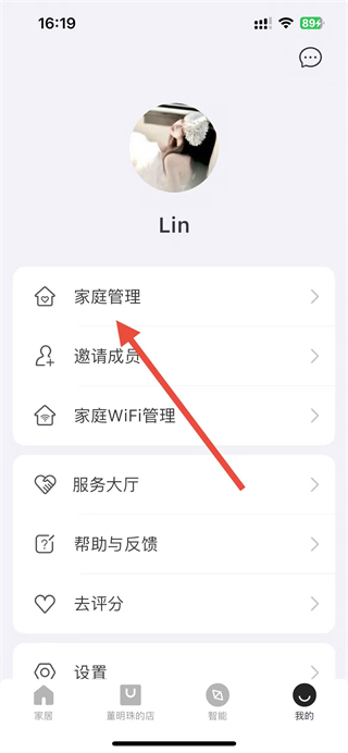 2、在“我的”頁面,點擊家庭管理選項,進入家庭管理頁面。