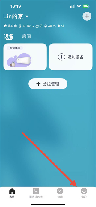 1、打開格力智能家居app,點擊底部導航欄中的我的選項。