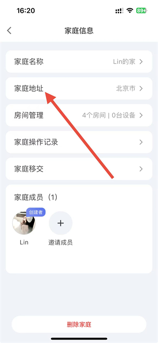 3、在家庭管理頁面,點擊家的選項,進入家庭信息頁面。