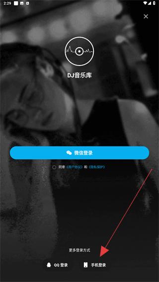 3、進(jìn)入APP登錄的頁面內(nèi),點(diǎn)擊下方手機(jī)登錄的按鈕。