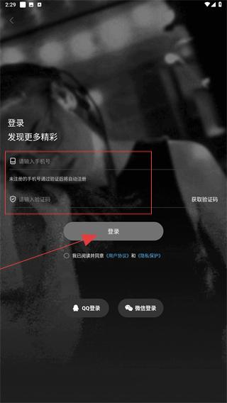 4、輸入要登錄的手機(jī)號、驗(yàn)證碼,再點(diǎn)擊登錄的按鈕即可。