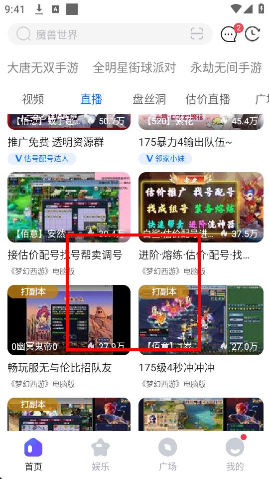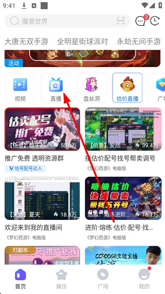 3、在直播分類頁面,瀏覽選擇感興趣的直播內(nèi)容,比如夢幻西游電腦版直播。