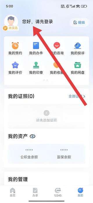 2、在個(gè)人頁(yè)面點(diǎn)擊頭像區(qū)域,進(jìn)入個(gè)人登錄頁(yè)面。