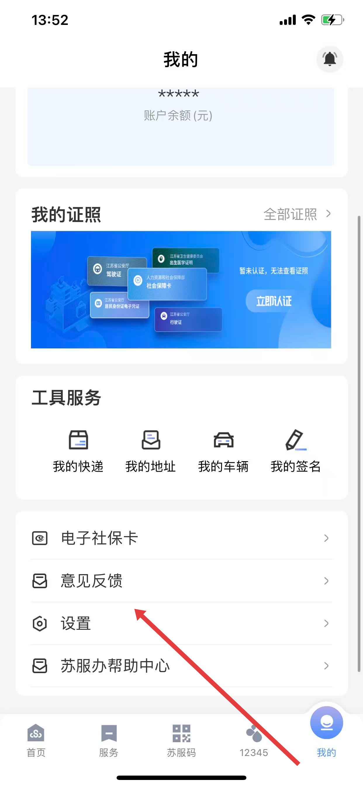 1、打開蘇服辦App,點擊底部導(dǎo)航欄中的我的選項。