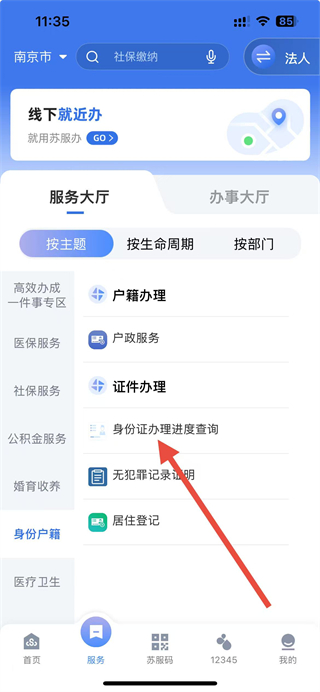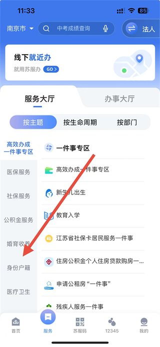 2、在服務(wù)頁面中,點擊身份戶籍選項。