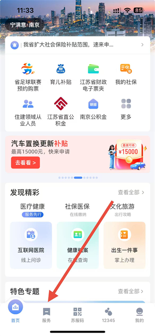 1、打開蘇服辦APP,點擊底部服務(wù)選項進入服務(wù)頁面。