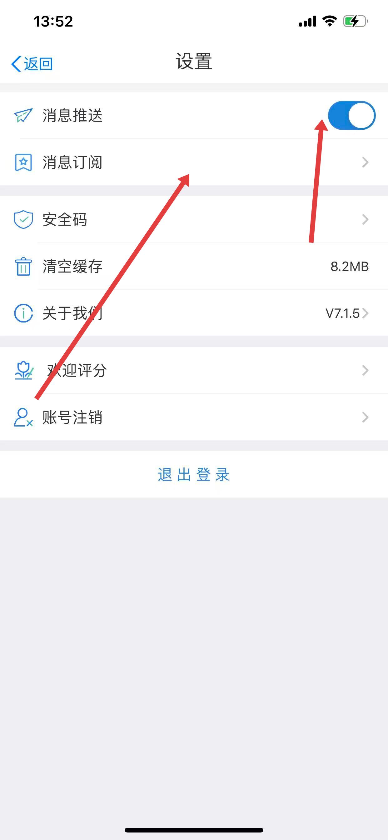 3、進入設置頁面后,確保消息推送開關處于開啟狀態(tài),點擊消息訂閱選項。
