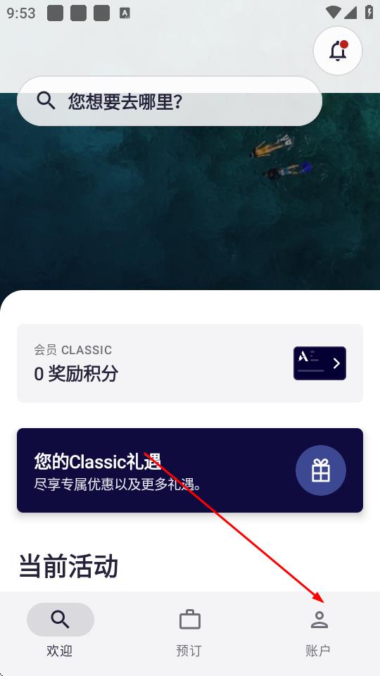 1、打開雅高酒店APP,點擊底部導(dǎo)航欄中的賬戶。