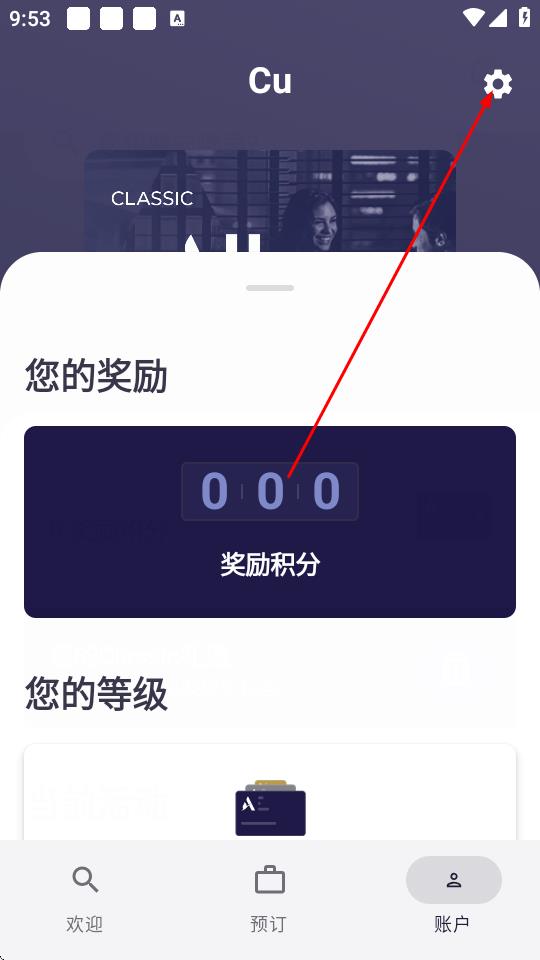 2、在賬戶頁面,點擊右上角的設(shè)置圖標(biāo)進入設(shè)置頁面。