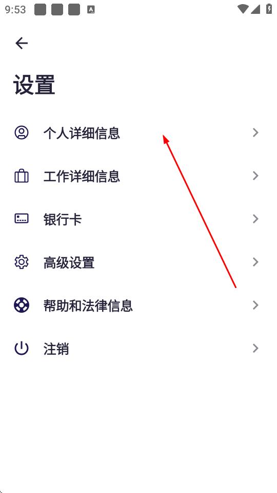 3、在設(shè)置頁面中,點擊個人詳細信息選項。