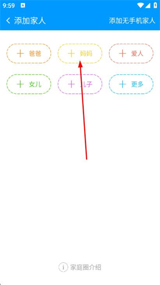 2、在添加家人頁(yè)面選擇要添加的家庭成員類(lèi)型。