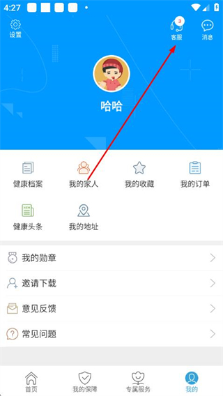 2、在個(gè)人頁(yè)面點(diǎn)擊右上角“客服”按鈕,進(jìn)入智慧e??头?yè)面。